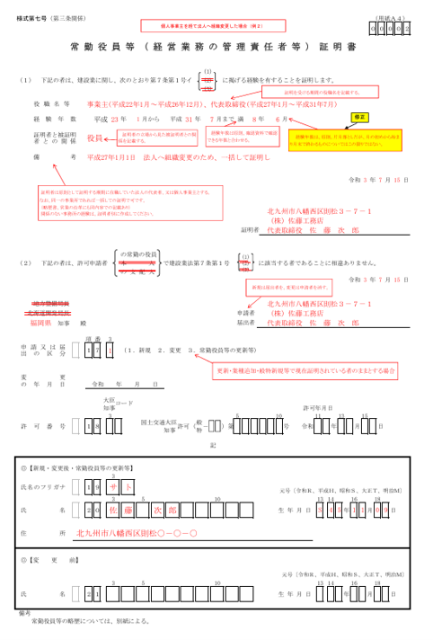 経管のことは様式第7号「経営業務管理責任者証明書」を作成します。