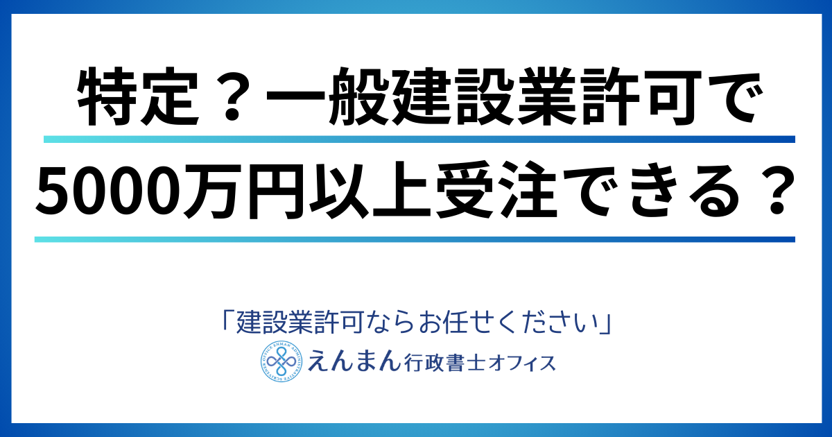 しかし、えんまん行政書士オフィスから結論を申し上げます。貴社が一般建設業許可しか持っていなくても、請負代金が5,000万円以上の工事を「受注」することは、法律上、まったく問題ありません。