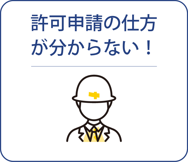 | サポート内容 | 許可要件の確認必要書類の収集申請書類の作成申請手数料の納付(50,000円)申請書類の提出許可後、許可通知書の受領行政との事前打ち合わせ |