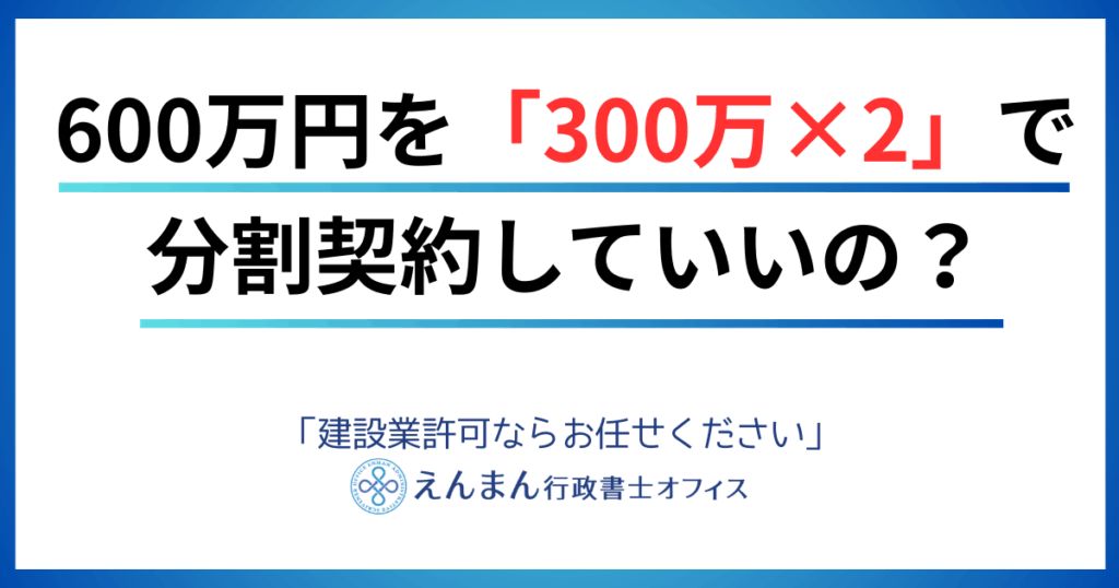【福岡】600万の工事を「300万×2本」に分割契約。建設業法違反になる「1件の工事」の判断基準